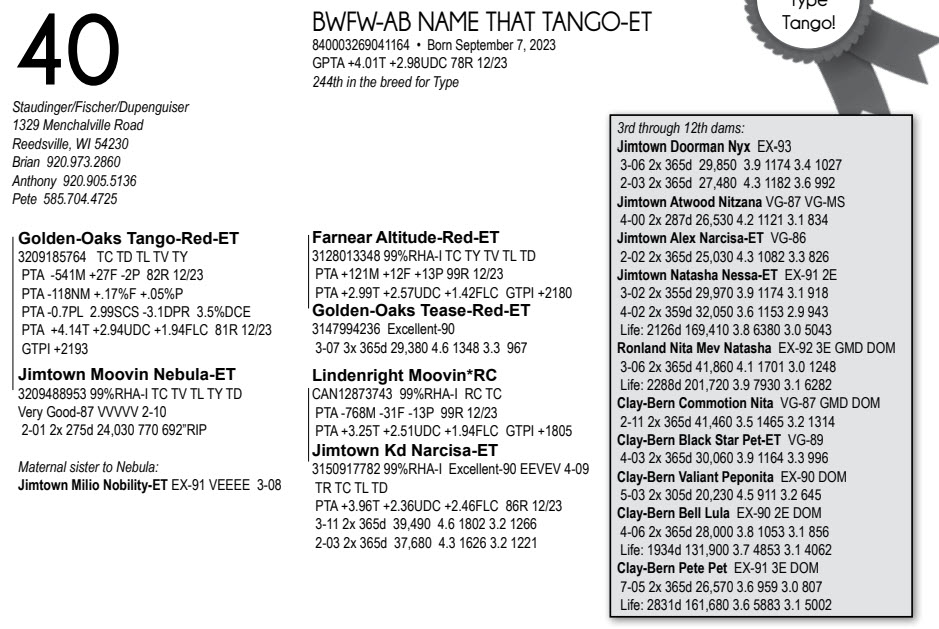 244th in the breed for Type