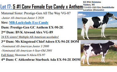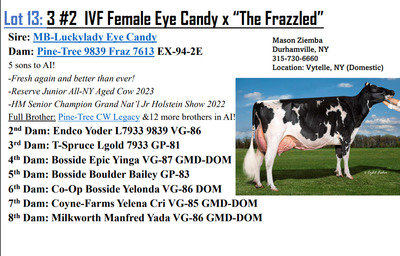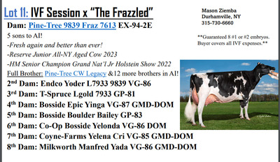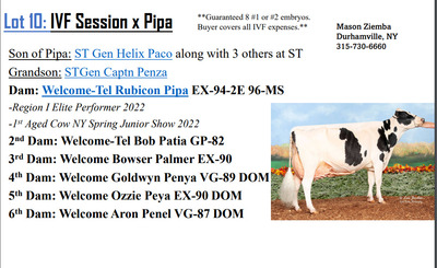 -Selling price is per Embryo -Buyer is responsible for all costs of shipping expenses. This auction will utilize an auto-extend, soft closing. With this feature, the bidding will close on 2 lots at the same time. Bidding will start to close from 7 pm to 7:02 if any lots receive a bid in the last minute of bidding they will extend bidding on that specific lot for an additional 2 minutes. Once 2 minutes have lapsed without any bidding activity, then that lot will close;