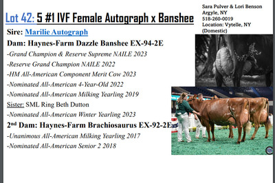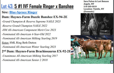 -Selling price is per Embryo -Buyer is responsible for all costs of shipping expenses. This auction will utilize an auto-extend, soft closing. With this feature, the bidding will close on 2 lots at the same time. Bidding will start to close from 7 pm to 7:02 if any lots receive a bid in the last minute of bidding they will extend bidding on that specific lot for an additional 2 minutes. Once 2 minutes have lapsed without any bidding activity, then that lot will close;