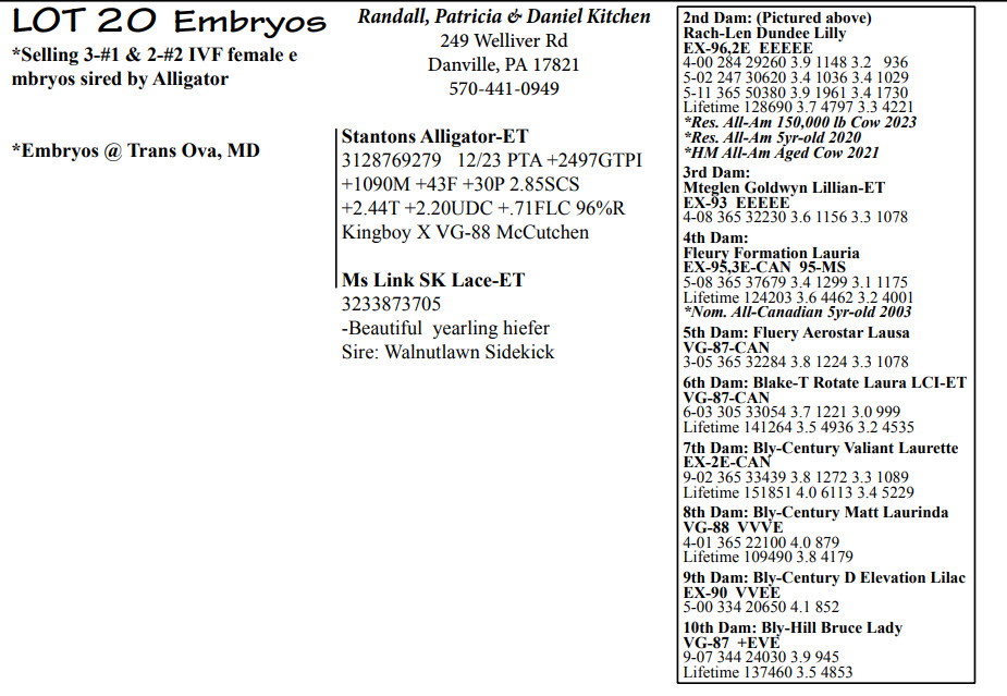 Selling 3-#1 & 2-#2 IVF female embryos sired by Alligator