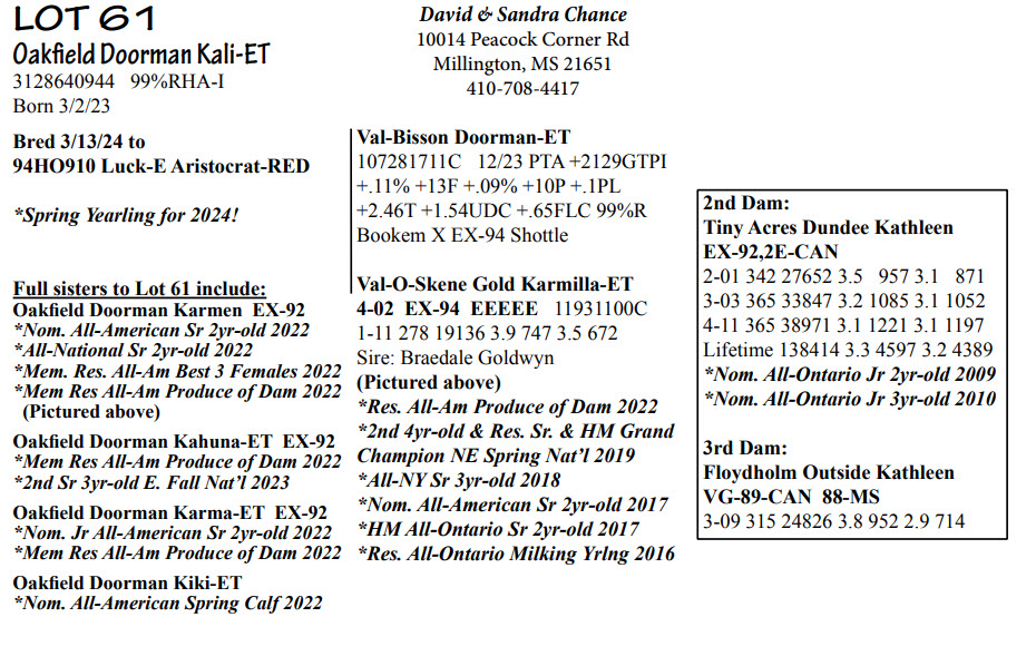 Bred 3/13/24 to 94HO910 Luck-E Aristocrat-RED