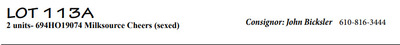 2 units- 694HO19074 Milksource Cheers (sexed)