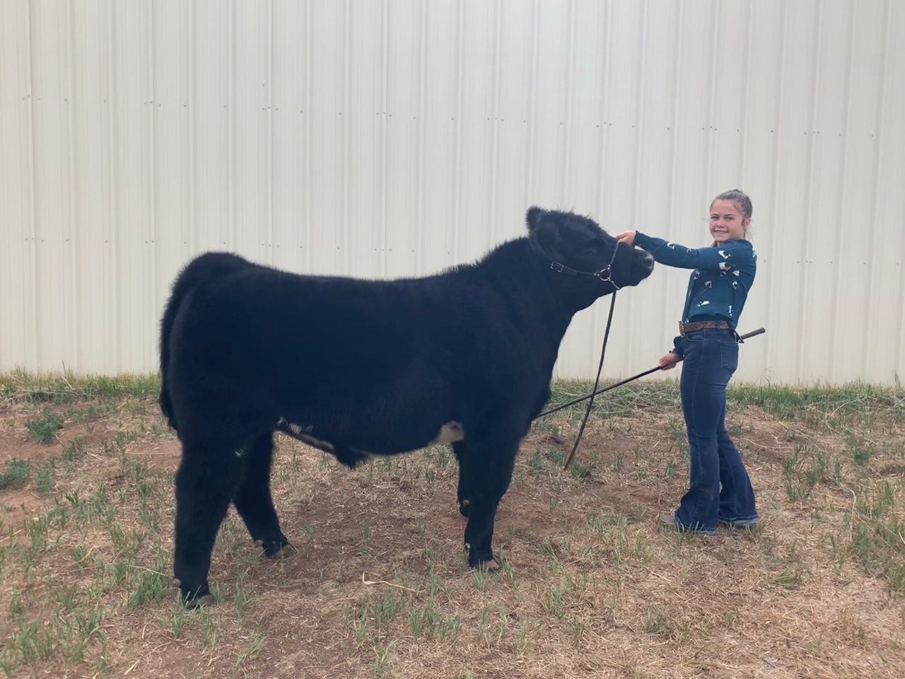 4-H Market Steer- Exhibitor, Kyleigh is in her third year showing a steer at the custer county fair, this year she has a charolais, gelbvieh cross. Every year I take a steer that my grandpa and I have produced from our herd. Her beef is locally raised and have been in this valley since the day they were born. Her goal as a seller at our county fair is to produce a healthy animal that buyers can take home and enjoy, and to produce quality beef for consumption. This yearshe hopes that everything she has learned can be seen through her steers good quality. The best part about raising a steer is that everything she learns she can take with me in the future.