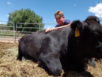 4-H Market Steer -Exhibitor, Rafael is 11 years this is his 3rd year showing in 4-H.He has been showing lambs and pigs since he was 5 years old. Rafael is showing pigs, lambs, horses and steers this year. This year his steer name is Pug. Pug enjoys playing with Rafael and licking his face. Rafael has shown Pug at the National Western Stock Steer prospect show and is is looking forward to showing him again at the Custer County Fair.