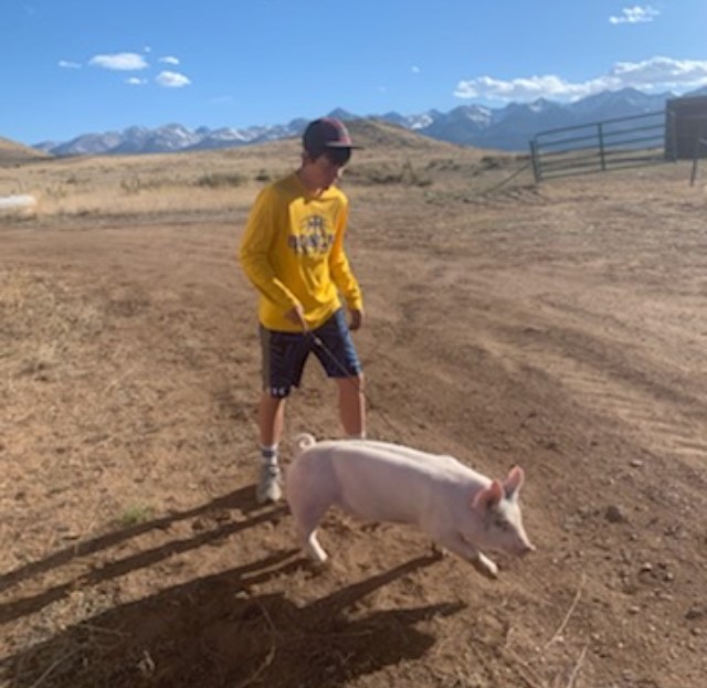 4-H Market Swine- Christopher is 14 years old and it is his first year in 4-H. In the past, he has helped his friends with their pigs and decided to one himself. He has one pig that as been really awesome and fun to work with named DeWight. Christopher has learned a lot from his pig and the older kids in 4-H. He wants to thank everyone for supporting the Custer County Livestock Sale.