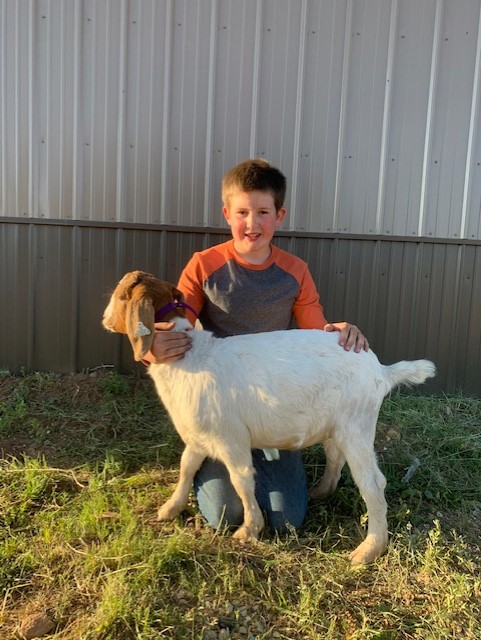 4-H Market goat- Exhibitor is Jesse. He has been in 4-H for 4 years and loves raising animals. His goat’s name is Nita. She is a sweet girl who loves treats and people. Please consider bidding on his goat this year. Thank you!