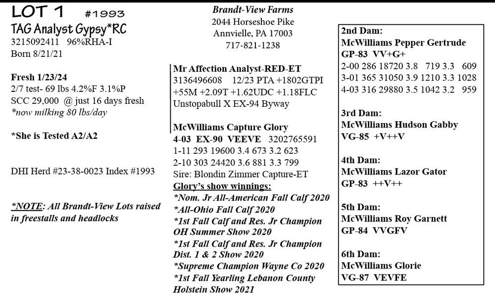 DAIRY COW AND HEIFER SALE - BRUBACKER'S QUALITY DAIRY SALES