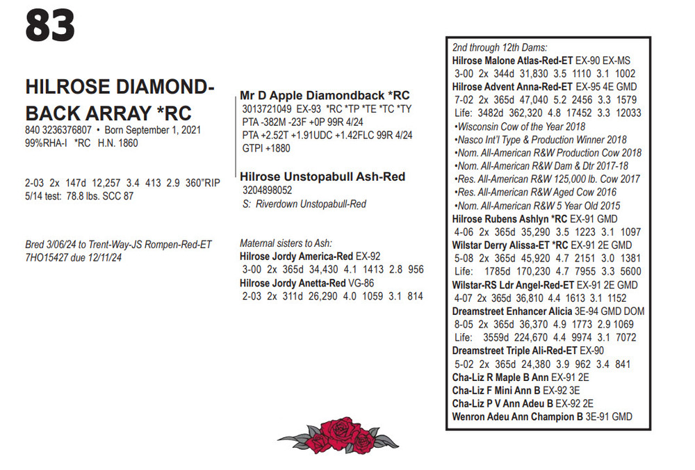 Bred 3/06/24 to Trent-Way-JS Rompen-Red-ET 7HO15427 due 12/11/24