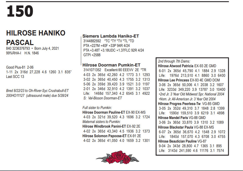 Bred 8/22/23 to Oh-River-Syc Crushabull-ET 200HO11127 (ultrasound male) due 5/28/24