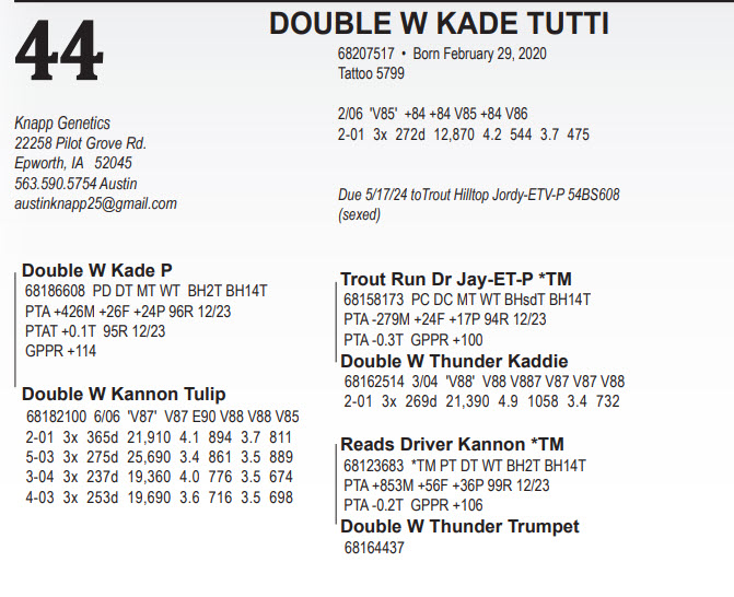 Due 5/17/24 toTrout Hilltop Jordy-ETV-P 54BS608