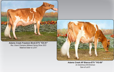 Dam of IVF Session: Adams Creek AP Bianca-ETV Buyer is purchasing rights to control the next IVF session(s). Buyer is guaranteed IVF sessions until a minimum of 8 #1 or #2 IVF embryos are produced. Embryo grades are determined at the time of transfer if fresh embryos or at time of freezing if freezing is requested by buyer. Buyer keeps all resulting embryos from these controlled IVF sessions. Buyer is responsible for all costs of the aspiration and mating sire decisions.