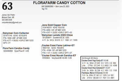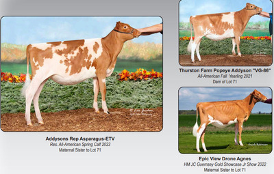 840 3235932717 Born March 6, 2023 Nom. All-American Spring Calf 2023 1st Spring Calf NGS-Louisville 2023 4th Spring Calf Midwest Guernsey Show 2023 5th Spring Calf SW WI High Protein Show 2023