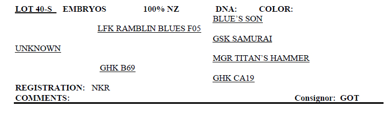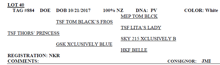 DOE DOB 10/21/2017 100% NZ DNA: PV COLOR: White REGISTRATION: NKR