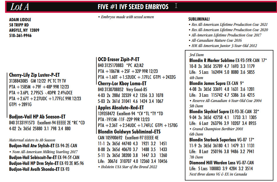 FIVE #1 IVF SEXED EMBRYOSEmbryos made with sexed semen