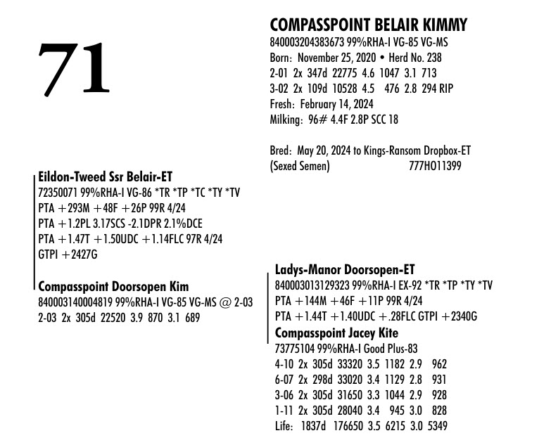 Milking: 96# 4.4F 2.8P SCC 18