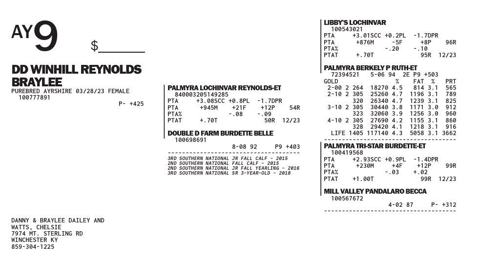 PUREBRED AYRSHIRE 03/28/23 FEMALE
