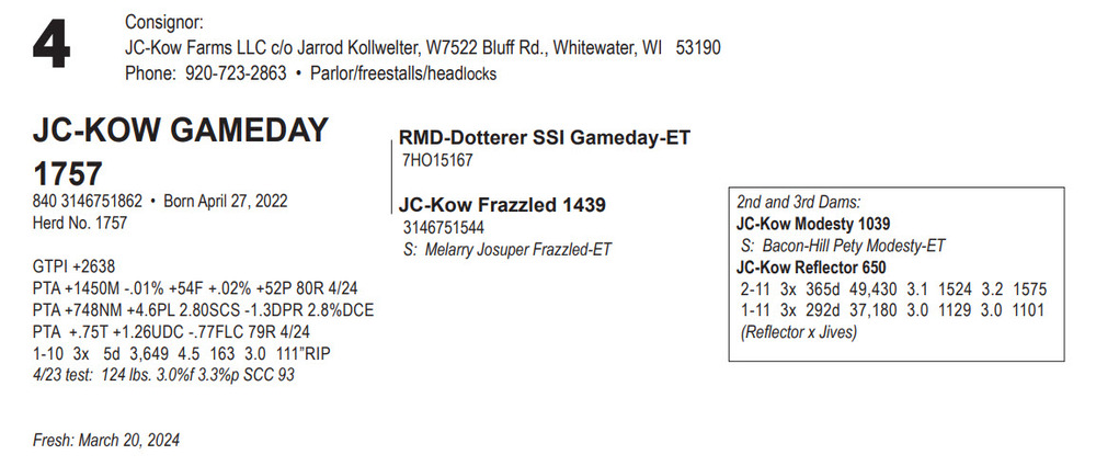 4/23 test: 124 lbs. 3.0%f 3.3%p SCC 93