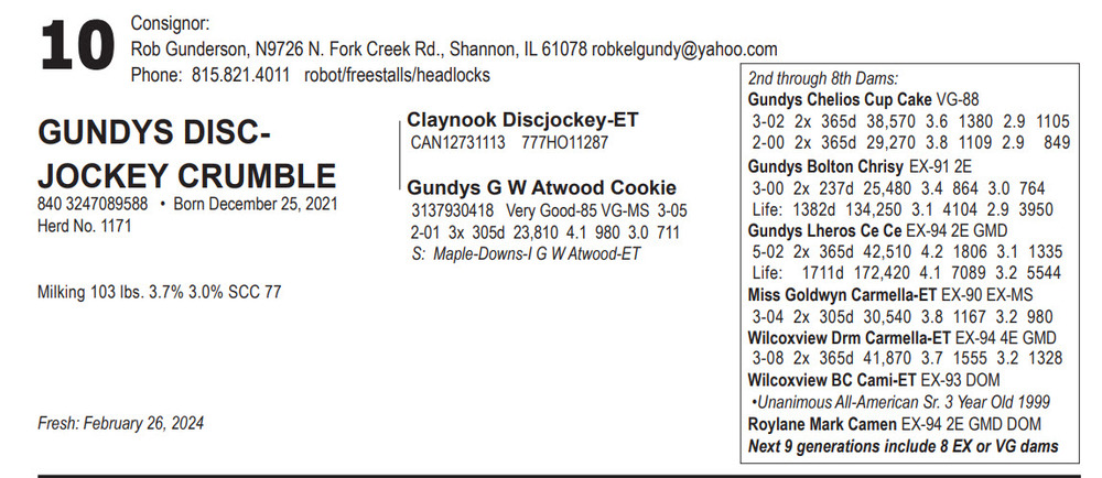 April Mid-West Dairy Production Sale