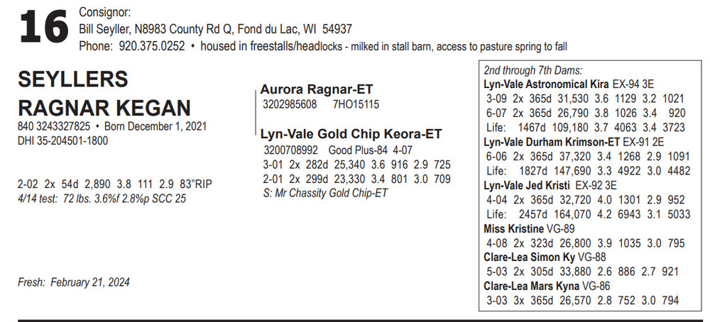 April Mid-West Dairy Production Sale