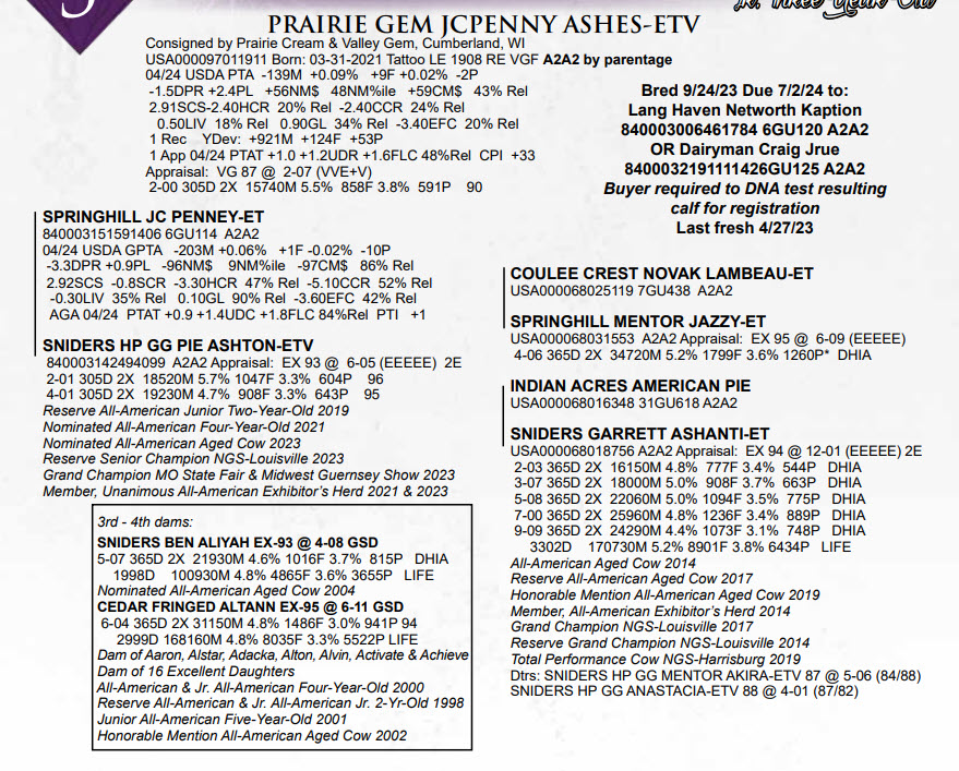 Consigned by Prairie Cream & Valley Gem, Cumberland, WI