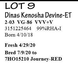 2-03 VG-86 VVV+V 3151225464 99%RHA-I Born 4/10/18 Fresh 4/29/20 Bred 7/9/20 to 7HO15210 Journey-RED