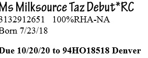 3132912651 100%RHA-NA Born 7/23/18 Due 10/20/20 to 94HO18518 Denver