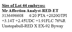 *Selling 1-#1 & 3-#2 IVF female embryos sired by Analyst-RED *domestic sale only