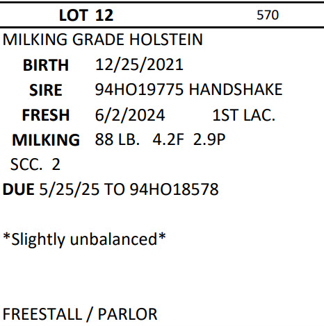 Brubacker Monthly Dairy Sale