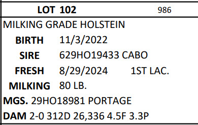 Brubacker Monthly Dairy Sale