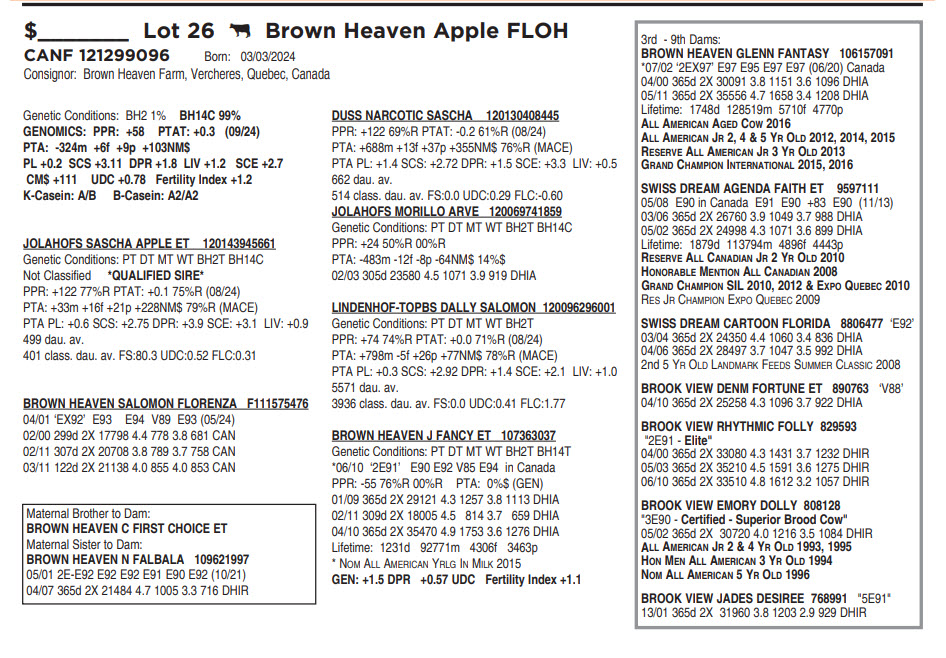 Consignor: Brown Heaven Farm, Vercheres, Quebec, Canada Genetic Conditions: BH2 1% BH14C 99%