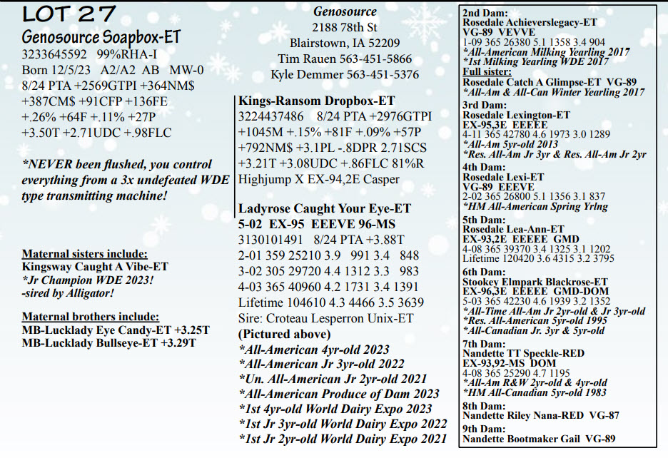 Offering the Genetic Leaders of the Present & Future for Type, Production,