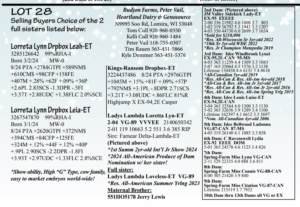*Show ability, High āGā Type, cow family, easy to market embryos world-wide!