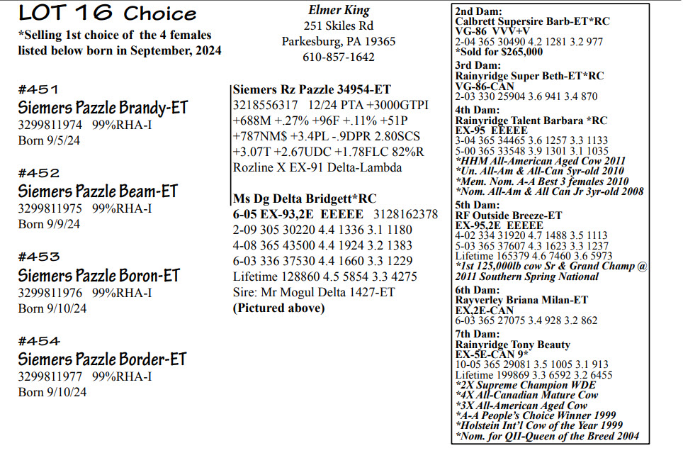 *Selling 1st choice of the 4 females