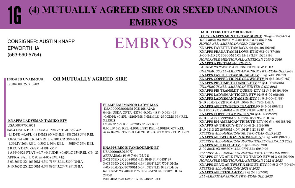 -Selling price is per Embryo or straw of semen