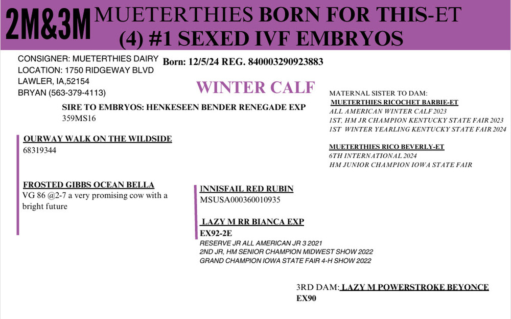 2) #1 & (1) #2 SEXED IVF EMBRYOS