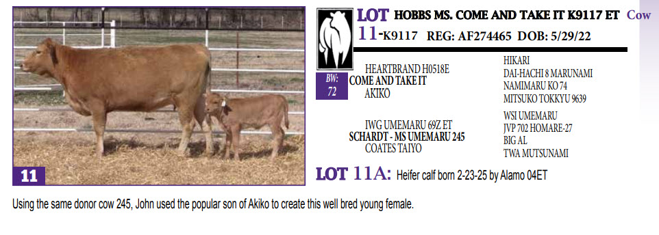 HOBBS MS. COME AND TAKE IT K9117 ET Cow
