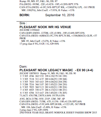 JECANF 12661167 - PUREBRED - VG 87 (2-4) BORN: September 10, 2016 Sells Fresh