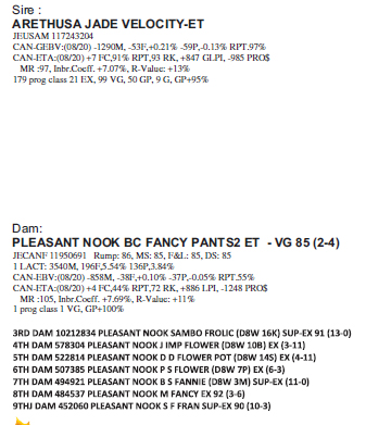 JECANF 12661190 - PUREBRED - VG 86 (3-2) Fresh June 07, 2020 BORN: June 05, 2017