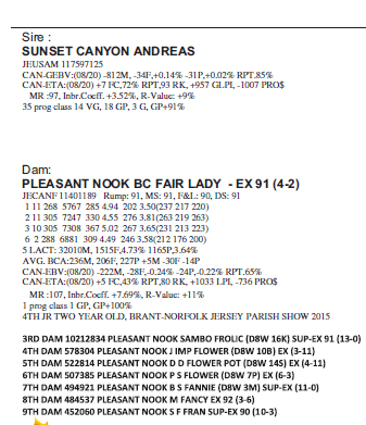JECANF 12661167 - PUREBRED - VG 87 (2-4) BORN: September 10, 2016 Sells Fresh