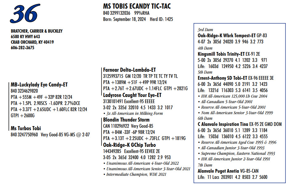 840 3299132036 99%RHA 36 Born: September 18, 2024 Herd ID: 1425