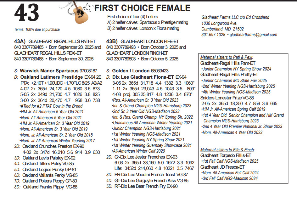 A) 2 heifer calves: Spartacus x Prestige mating