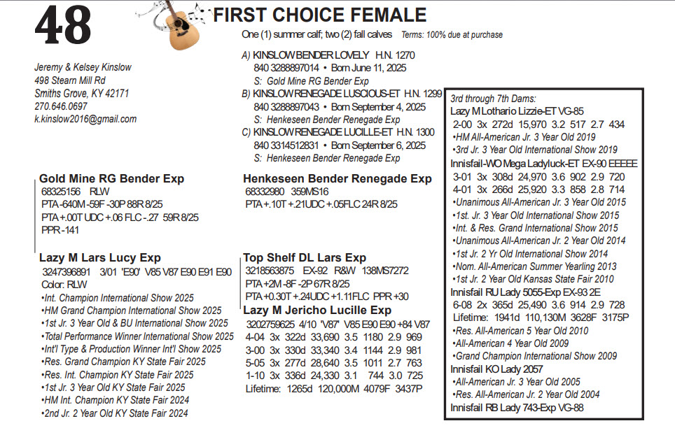 C) KINSLOW RENEGADE LUCILLE-ET H.N. 1300