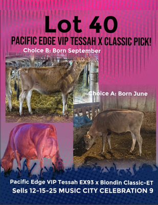 Owners guarantee dam will be VG before calf is 9 mos. of age or 25% refund