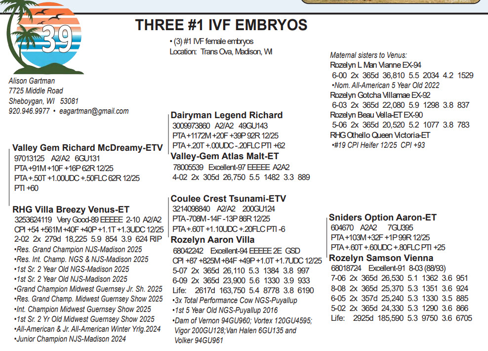 -Selling price is per Embryo