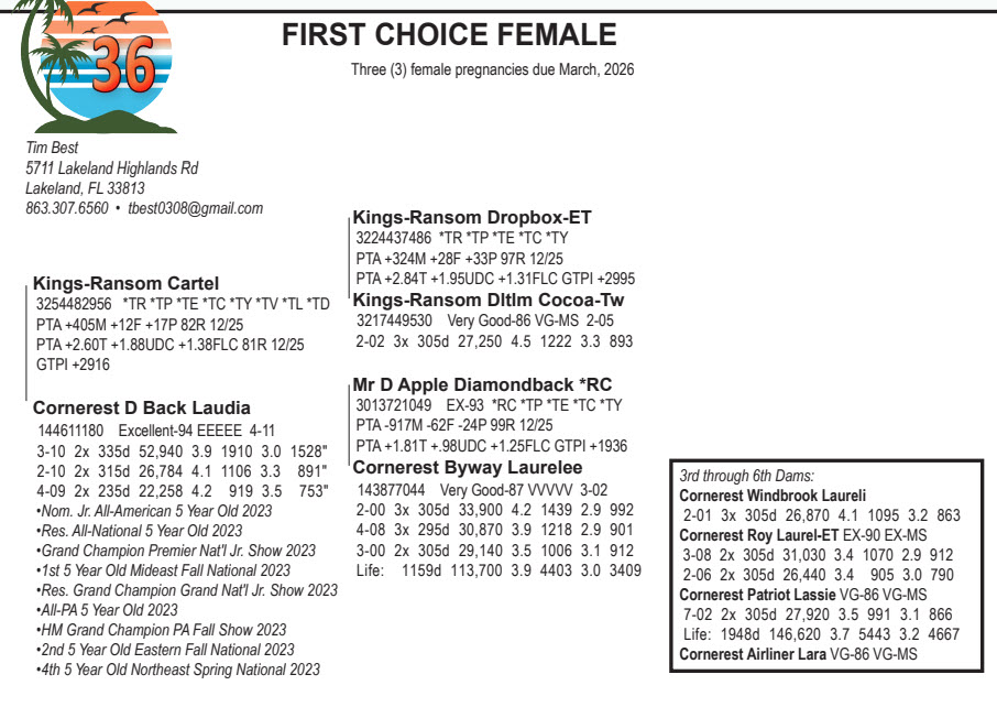 Three (3) female pregnancies due March, 2026