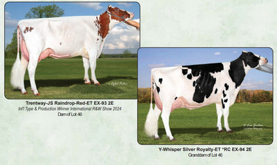 NY Holstein Convention ET Sale 6301 NY-298, East Syracuse NY, 13057 Live lots - IVF Sessions - Embryos - Elite Choices Contact Agent: Catalog | Terms of Auction Download CATALOG Download UPDATES ISSUU CATALOG LINK Catalog | Terms Download CATALOG Download UPDATES ISSUU CATALOG LINK All Items (53) No Category (53) Categories All Items (53) No Category (53) Search Item #: Keyword: Search Catalog Item #: Keyword: 20 items per page 50 items per page 100 items per page Go to page #: 1 , 2 , 3 #38 – DELTA LAMBDA X LOVEBUG CHOICE A) REYNCREST DL LOVEME-ET 840 3309757562 Born September 2, 2025 B) REYNCREST DL LOVEHER-ET 840 3309757563 Born September 2, 2025 C) REYNCREST DL LOVEHIM-ET 840 3309757564 Born September 2, 2025 Location: 6301 NY-298, East Syracuse NY, 13057 More Info / Bid Now Track this Item Sold High Bid: $2,900.00 – #1056 #38 – DELTA LAMBDA X LOVEBUG CHOICE Sold High Bid: $2,900 More Details More Info / Bid Track Item A) REYNCREST DL LOVEME-ET 840 3309757562 Born September 2, 2025 B) REYNCREST DL LOVEHER-ET 840 3309757563 Born September 2, 2025 C) REYNCREST DL LOVEHIM-ET 840 3309757564 Born September 2, 2025 Location: 6301 NY-298, East Syracuse NY, 13057 #39 – HINDSIGHT X ADDIE RED CHOICE Three (3) female pregnancies due June 1, 2026 Location: 6301 NY-298, East Syracuse NY, 13057 More Info / Bid Now Track this Item Sold High Bid: $3,600.00 – #500 #39 – HINDSIGHT X ADDIE RED CHOICE Sold High Bid: $3,600 More Details More Info / Bid Track Item Three (3) female pregnancies due June 1, 2026 Location: 6301 NY-298, East Syracuse NY, 13057 #40 – PALDWYN X JOYFUL PP RED CHOICE Three (3) female pregnancies due March 1, 2026 Selection to be made by June 1, 2026 Location: 6301 NY-298, East Syracuse NY, 13057 More Info / Bid Now Track this Item Sold High Bid: $2,400.00 – #500 #40 – PALDWYN X JOYFUL PP RED CHOICE Sold High Bid: $2,400 More Details More Info / Bid Track Item Three (3) female pregnancies due March 1, 2026 Selection to be made by June 1, 2026 Location: 6301 NY-298, East Syracuse NY, 13057 #41 – AUDACIOUS X AZOOZOO EMBRYOS (4) #1 IVF embryos from sexed semen Qualified for export to EU, UK & CAN Location: Sunshine Genetics, Whitewater, WI Location: 6301 NY-298, East Syracuse NY, 13057 More Info / Bid Now Track this Item Sold High Bid: $500.00 – #1117 Auction Type: Quantity x Price Quantity: 4 #41 – AUDACIOUS X AZOOZOO EMBRYOS Quantity x PriceQuantity: 4 Sold High Bid: $500 More Details More Info / Bid Track Item (4) #1 IVF embryos from sexed semen Qualified for export to EU, UK & CAN Location: Sunshine Genetics, Whitewater, WI Location: 6301 NY-298, East Syracuse NY, 13057 #42 – DAX X RAINBOE RED EMBRYOS (3) #1 and (2) #2 IVF embryos from sexed semen Location: 6301 NY-298, East Syracuse NY, 13057 More Info / Bid Now Track this Item Sold High Bid: $450.00 – #500 Auction Type: Quantity x Price Quantity: 5 #42 – DAX X RAINBOE RED EMBRYOS Quantity x PriceQuantity: 5 Sold High Bid: $450 More Details More Info / Bid Track Item (3) #1 and (2) #2 IVF embryos from sexed semen Location: 6301 NY-298, East Syracuse NY, 13057 #43 – DAX X SOPHIA RED EMBRYOS (2) #1 IVF embryos from sexed semen S: Haveitall Heatwv Dax-Red-ET (2) #2 IVF embryos from sexed semen S: OCD Rebel Spin-Red-ET Qualify for export to EU & AU Location: Trans Ova, MD Location: 6301 NY-298, East Syracuse NY, 13057 More Info / Bid Now Track this Item Sold High Bid: $375.00 – #1060 Auction Type: Quantity x Price Quantity: 4 #43 – DAX X SOPHIA RED EMBRYOS Quantity x PriceQuantity: 4 Sold High Bid: $375 More Details More Info / Bid Track Item (2) #1 IVF embryos from sexed semen S: Haveitall Heatwv Dax-Red-ET (2) #2 IVF embryos from sexed semen S: OCD Rebel Spin-Red-ET Qualify for export to EU & AU Location: Trans Ova, MD Location: 6301 NY-298, East Syracuse NY, 13057 #44 – AUDACIOUS X ARIKI RED EMBRYOS (5) #1 IVF embryos from sexed semen Qualify for export to UK & CAN Location: Trans Ova, Madison, WI Location: 6301 NY-298, East Syracuse NY, 13057 More Info / Bid Now Track this Item Sold High Bid: $525.00 – #1117 Auction Type: Quantity x Price Quantity: 5 #44 – AUDACIOUS X ARIKI RED EMBRYOS Quantity x PriceQuantity: 5 Sold High Bid: $525 More Details More Info / Bid Track Item (5) #1 IVF embryos from sexed semen Qualify for export to UK & CAN Location: Trans Ova, Madison, WI Location: 6301 NY-298, East Syracuse NY, 13057 #45 – UNSTOPABULL X RIVER RED EMBRYOS (7) #1 female IVF embryos Location: Fort Ann, NY Location: 6301 NY-298, East Syracuse NY, 13057 More Info / Bid Now Track this Item Sold High Bid: $550.00 – #1106 Auction Type: Quantity x Price Quantity: 7 #45 – UNSTOPABULL X RIVER RED EMBRYOS Quantity x PriceQuantity: 7 Sold High Bid: $550 More Details More Info / Bid Track Item (7) #1 female IVF embryos Location: Fort Ann, NY Location: 6301 NY-298, East Syracuse NY, 13057 #46 – DAX X RAINDROPE RED EMBRYOS (5) #1 IVF embryos from sexed semen Location: Trans Ova, WI Location: 6301 NY-298, East Syracuse NY, 13057 More Info / Bid Now Track this Item Sold High Bid: $400.00 – #1054 Auction Type: Quantity x Price Quantity: 5 #46 – DAX X RAINDROPE RED EMBRYOS Quantity x PriceQuantity: 5 Sold High Bid: $400 More Details More Info / Bid Track Item (5) #1 IVF embryos from sexed semen Location: Trans Ova, WI Location: 6301 NY-298, East Syracuse NY, 13057 #47 – HAVENOFEAR X 2463 EMBRYOS (3) #1 female IVF embryos from sexed semen Location: Trans Ova, MD Location: 6301 NY-298, East Syracuse NY, 13057 More Info / Bid Now Track this Item Sold High Bid: $775.00 – #1138 Auction Type: Quantity x Price Quantity: 3 #47 – HAVENOFEAR X 2463 EMBRYOS Quantity x PriceQuantity: 3 Sold High Bid: $775 More Details More Info / Bid Track Item (3) #1 female IVF embryos from sexed semen Location: Trans Ova, MD Location: 6301 NY-298, East Syracuse NY, 13057 #48 – BARKEEP X LEENA EMBYROS (4) #1 conventional embryos from sexed semen Qualified for export to EU, UK & CAN Location: Sunshine Genetics, Whitew