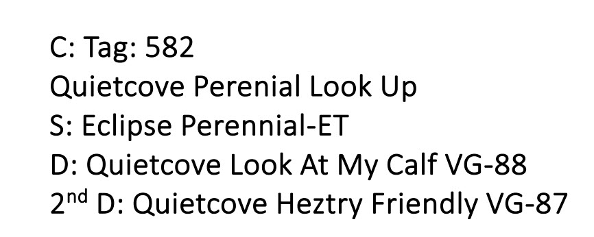 Approximately 40 heifers, embryos, and cows will sell out of show winning cow families. This auction will utilize an auto-extend, soft closing closing. With this feature, the bidding will close on ALL lots at the same time (Race Horse Style) Bidding will start to close from 8 pm to 8:02 if any lots receive a bid after 8:01 they will extend bidding on all lots for an additional 2 minutes. Once 2 minutes have lapsed without any bidding activity, then all lots will close.