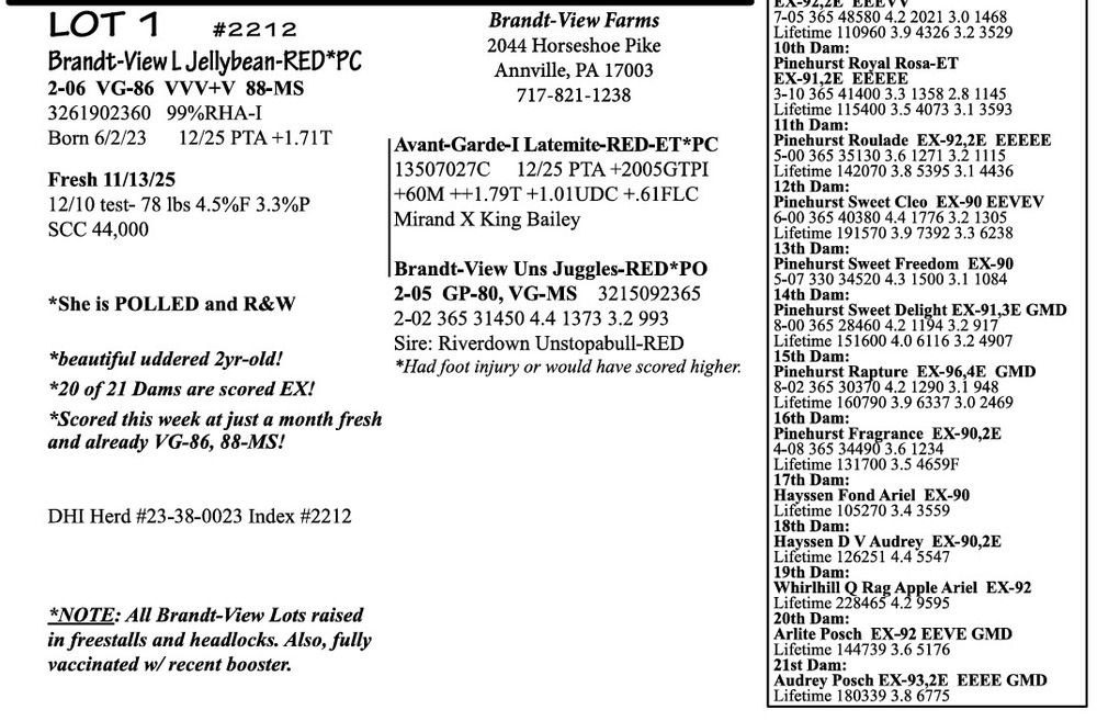 BRUBACKER'S DECEMBER Monthly Production Sale