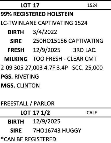 BRUBACKER'S DECEMBER Monthly Production Sale