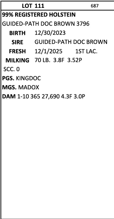 BRUBACKER'S DECEMBER Monthly Production Sale